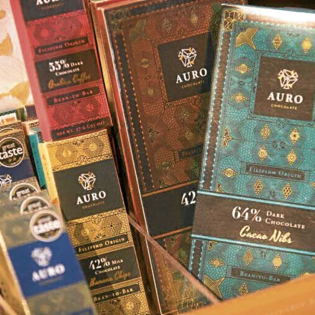 On its website, Auro says its mission is to “refine Philippine cacao and elevate the lives of our local farmers who are as precious as gold.” Auro launched in 2017 as a “tree-to-bar” chocolate brand and social enterprise that espouses community development programs and premiums above commodity price for supporting farmers.